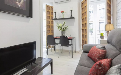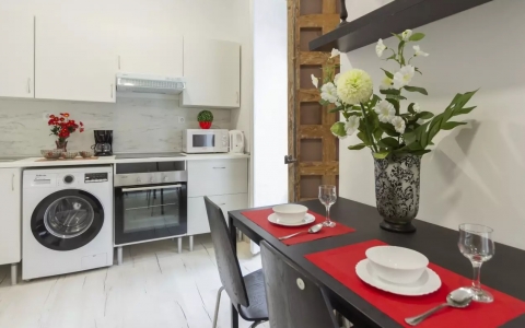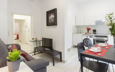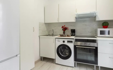 Beautiful apartment with lots of natural light located in a historic building. Two bedrooms and sofa bed in living room. Also has separate terrace. Large bathroom. Fully equipped modern functional kitchen.