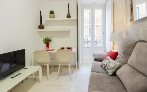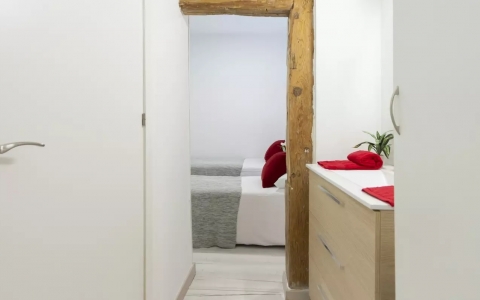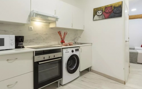 Beautiful apartment with lots of natural light located in a historic building. Two bedrooms and sofa bed in living room. Also has separate terrace. Large bathroom. Fully equipped modern functional kitchen.