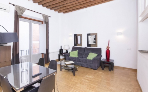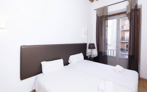 The apartment has 3 bedrooms, 2 bathrooms and a balcony overlooking the center of Madrid.