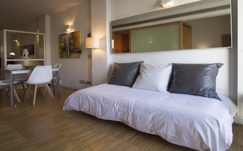 Light sunny fourth floor apartment situated in our office building. Here you can count on the privacy you need to enjoy a few quiet relaxing days in the centre of Madrid. One double bedroom, living-dining room. Large bathroom. The fully equipped kitchen is modern and functional.