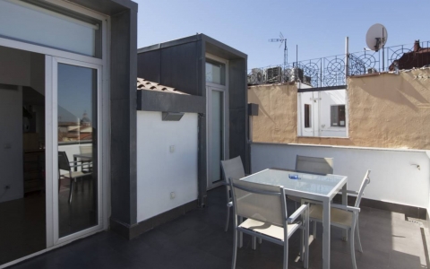 Fantastic attic maisonette with terrace, sleeps up to eight people. Combines highly modern design with contrasting views of old Madrid. Large terrace with spectacular views of the Latina district, the domes of San Francisco el Grande, the cathedral of San Isidro and the Casa de Campo. Two floors with three double bedrooms, 2 bathrooms and living room. The fully equipped kitchen is modern and functional. Wooden floors and double glazed windows.
