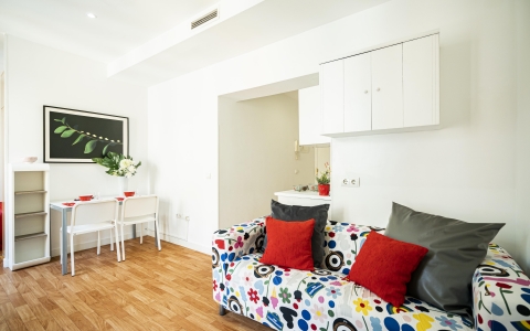 Espacioso estudio con suelo de parquet. Cocina funcional y equipada con todo lo necesario para su estancia.