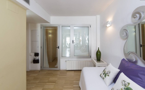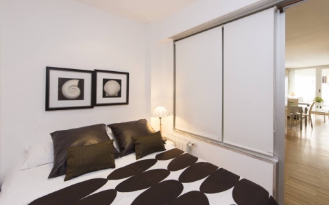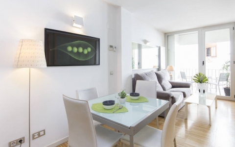 Cuenta con 2 dormitorios, 1 baño y terraza con vistas a la Plaza de Tirso de Molina. Está completamente equipado y decorado con mobiliario nuevo y moderno.