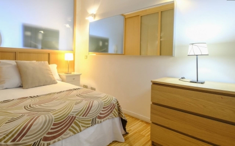 Luminoso y amplio apartamento en el centro de Madrid. Consta de 2 habitaciones dobles, salón-comedor con un sofá cama. Baño muy espacioso.