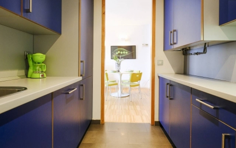 La cocina es moderna y muy funcional. Los suelos son de madera. Completamente equipado y decorado con mobiliario nuevo y moderno.