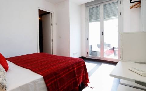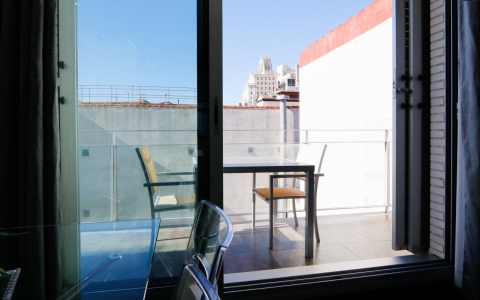 Duplex penthouse très lumineux, avec des meubles modernes et deux terrasses ( intérieur et extérieur). Il dispose de 2 chambres et 2 salles de bains, une avec bain à remous et l'accès à une magnifique terrasse donnant sur les toits de la ville.   Situé dans le centre de Madrid, dans le quartier de Chueca, à côté de Calle Fuencarral.