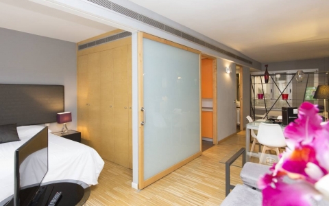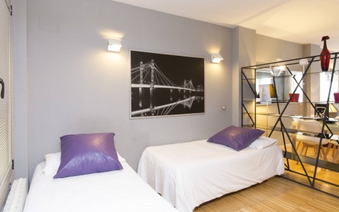 Appartement lumineux situé au deuxième étage du bâtiment. Moderne et confortable, il dispose d’une chambre avec un lit deux personnes, d’un salon avec un canapé-lit. Salle de bains très spacieuse. La cuisine, complètement équipée, est moderne et très fonctionnelle.