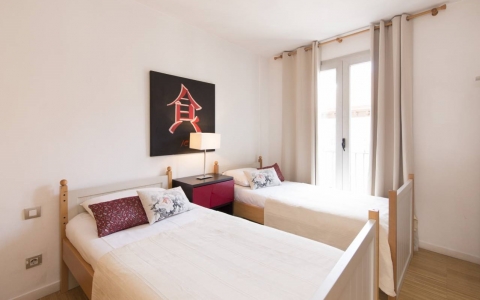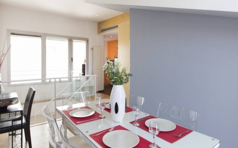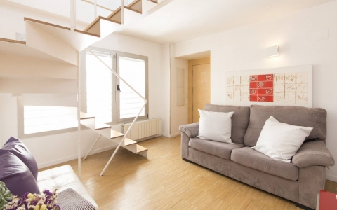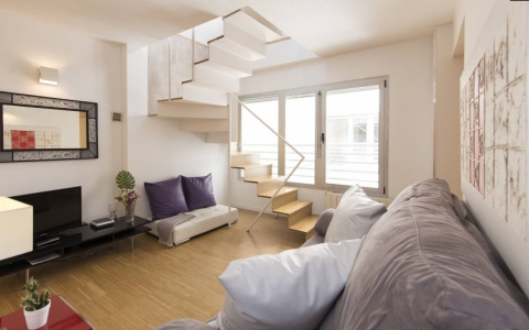 Duplex spectaculaire au dernier étage avec terrasse, situé tout en haut du bâtiment. Cet appartement duplex très lumineux combine confort et design. Il dispose d’une grande terrasse qui permet de profiter d’une vue formidable sur Madrid. Il se compose de deux étages et dispose de deux chambres doubles, un vaste salon, une salle de bains complète et WC. La cuisine, complètement équipée, est moderne et très fonctionnelle.